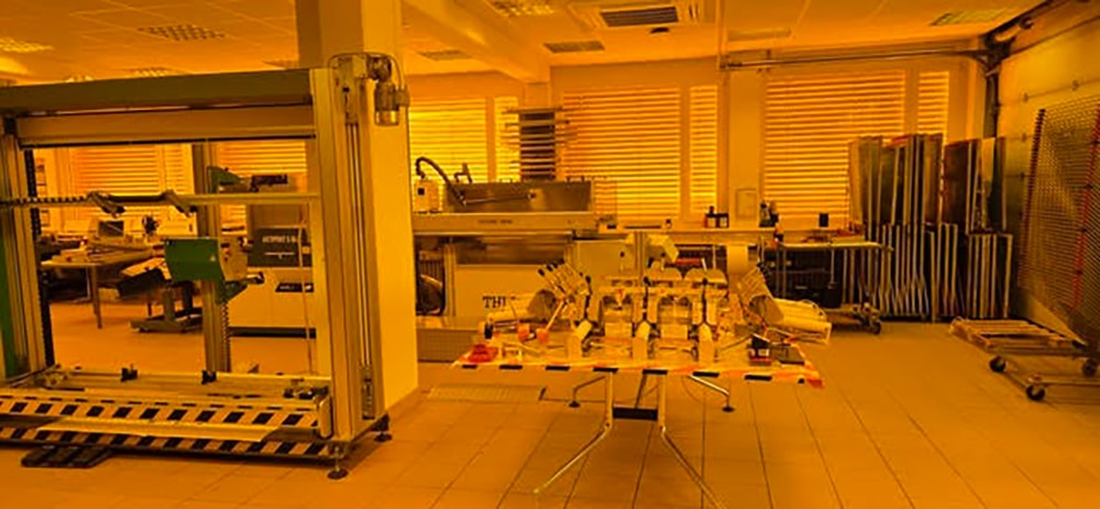 Thomas gave me a tour of the production and testing facilities at Kiwo. The testing labs have UV filters to block light. He shows us the specialized rotary screens used in textile and wallpaper production. A metal rod is attracted to the base of the machine and forces the ink through the cylindrical screen as it rotates. The company’s R & D team is constantly testing its products and developing new ones.